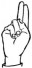 На ћирилици написано БУДИМИР ЧЕРЕНАЦ састоји се из 14 слова [?]. Исписано ћириличном једноручном азбуком за глувонеме: